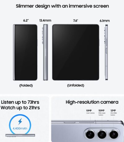 ₹78,500.00 – ₹85,500.00Price range: ₹78,500.00 through ₹85,500.00Samsung Galaxy Z Fold4 5G (Graygreen, 12GB RAM, 512GB Storage) with No Cost EMI/Additional Exchange Offers