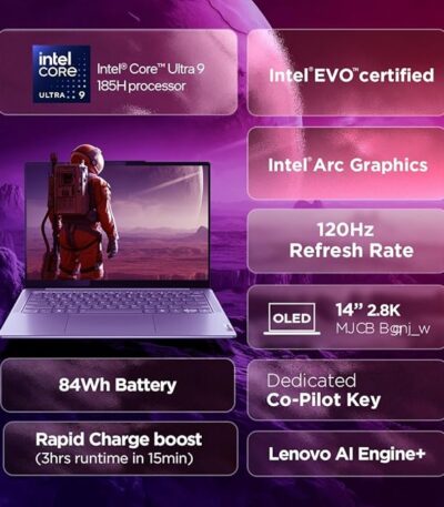 Lenovo Yoga Slim 7 Intel Core Ultra 9 185H 14″(35.5cm) WUXGA-OLED Laptop (32GB RAM/1TB SSD/AI PC/2Wx4 Speakers/Windows 11/Microsoft 365 Basic + Office Home 2024/1Yr ADP Free/Grey/1.39Kg), 83CV00B3IN